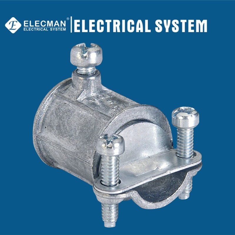 ELECMAN® ο συνδυασμός ψευδάργυρου ευκίνητος (συμπίεση δύο βιδών) στη σύζευξη EMT (setscrew) αποτελείται από το die-cast ψευδάργυρο για την προστιθέμενες διάρκεια και την αντίσταση διάβρωσης. Χρησιμοποιείται για να ενώσει τον αγωγό EMT στο θωρακισμένο καλώδιο, το ντυμένο καλώδιο μετάλλων ή τον εύκαμπτο μεταλλικό αγωγό. Η σύζευξη είναι που απαριθμείται UL.