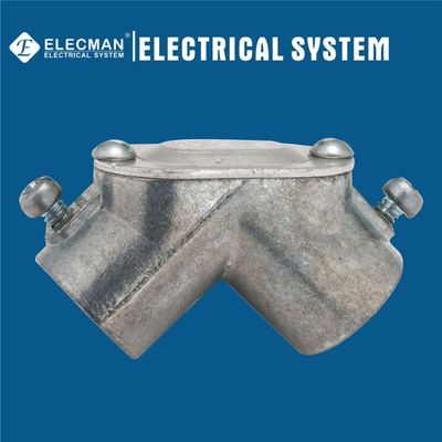 Το ELECMAN παρέχει πλήρους μεγέθους λίστα UL 90 μοιρών ψευδάργυρο σωλήνων EMT αγκώνες έλξης βίδα προσαρμογής EMT από 1/2" έως 1-1/4".