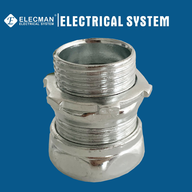 ELECMAN® οι συνδετήρες συμπίεσης χάλυβα EMT χρησιμοποιούνται για να συνδέσουν τους αγωγούς EMT thinwall με τα ηλεκτρικά κιβώτια συνδέσεων ή τα συνημμένα. Η βαριά κατασκευή χάλυβα μετρητών τους διατηρεί τη μηχανική προστασία και στερεά να στηρίξει του αγωγού στο οριζόμενη ηλεκτρική κιβώτιο συνδέσεων ή την περίφραξη. Οι συνδετήρες συμπίεσης χάλυβα είναι επίσης ψευδάργυρος που επιμεταλλώνεται με ηλεκτρόλυση για την άριστη προστασία διάβρωσης στις υγρές θέσεις.