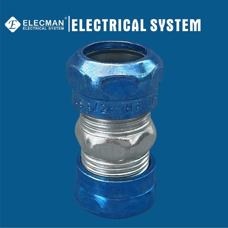 Οι συζεύξεις συμπίεσης χάλυβα EMT ELECMAN® Raintight χαρακτηρίζουν έναν εύκολο να εγκαταστήσουν τη συνέλευση τύπων συμπίεσης και να παρέχουν ασφαλείς, συγκεκριμένους σφιχτό και raintight την προστασία κατά να ενώσουν τις άκρες του λεπτού αγωγού τοίχων EMT από κοινού. Ο χαρακτηρισμός που χτίζεται για να διαρκέσει την κατασκευή χάλυβα με έναν ψευδάργυρο που καλύπτεται τελειώνει για τη διάρκεια και τη μακροζωία διαθέσιμα μεγέθη από το 1/2» σε 4». Τα περισσότερα μεγέθη UL που απαριθμούνται.